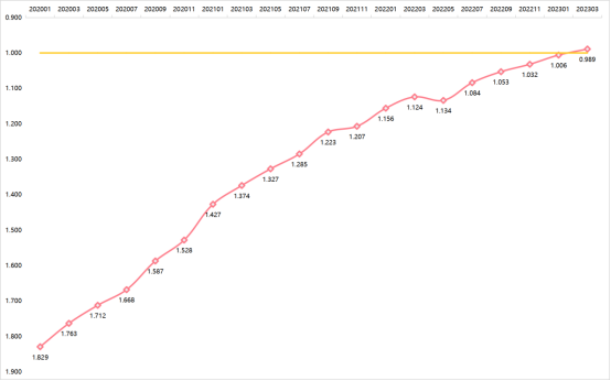 我校临床医学全球位次趋势图(2020.1-2023.3)