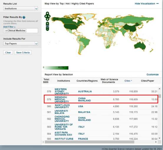3月9日,科睿唯安(Clarivate Analytics)发布了ESI最新数据,学校ESI综合排名位列全球第788位,在中国内地高校中排在第69位,连续17期位列省属高校第一位。我校临床医学学科首次进入全球前千分之一,这是我校学科内涵建设取得的又一新突破。