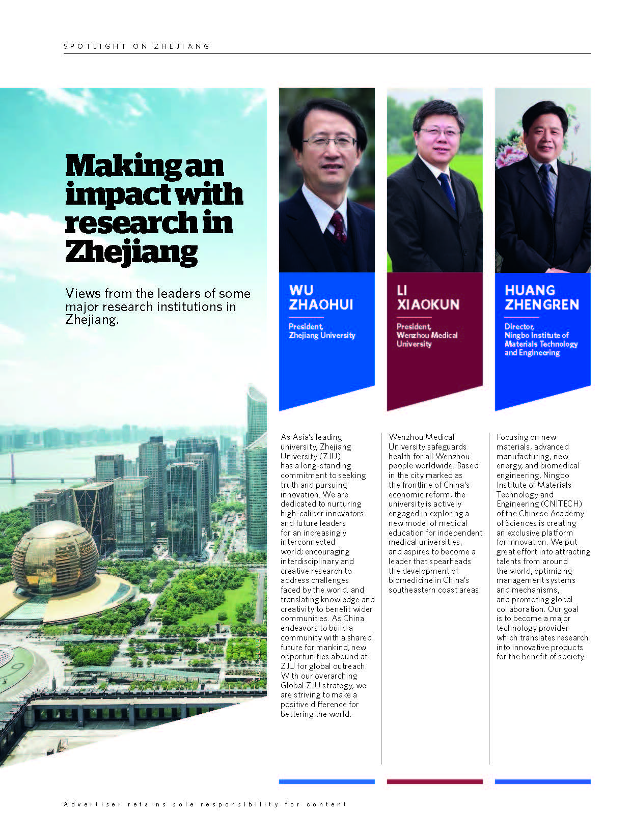 近日,Nature主刊出版“聚焦浙江”(Spotlight on Zhejiang)特刊,重点阐述了浙江省在高科技人才国际竞争中扮演的突出角色。特刊以“锐意进取”(A strong vision for progress)为题,重点介绍了我校的发展历史、办学资源和优势特色学科等。据悉,本期特刊仅刊载了浙江大学、中国科学院宁波材料技术与工程研究所和我校3家单位的相关信息。
