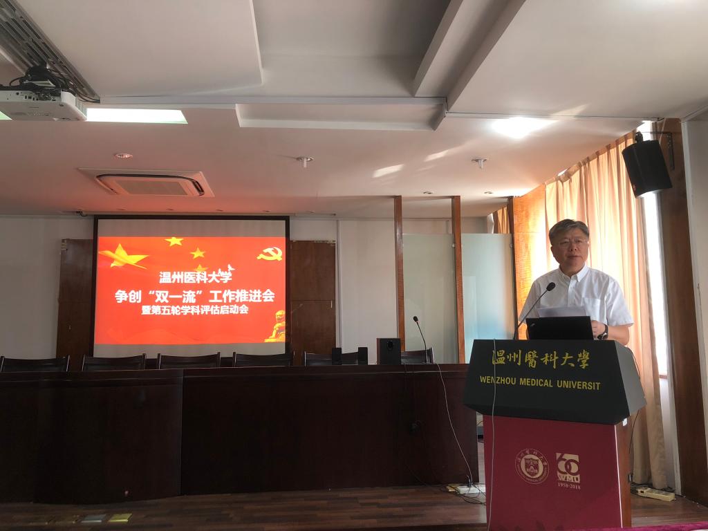 会上,李校堃校长作了《以评促建 争创一流 全力做好第五轮学科评估工作》的动员讲话。他指出全国学科评估对学校优化学科和学位点布局,提升学科整体发展水平和学校声誉有着至关重要的影响。他强调,争创“双一流”是当代温医大人的使命与担当,要以本次学科评估作为争创“双一流”的重要契机,力争在评估中取得历史性突破。他结合学校实际情况对学科评估工作提出六点具体要求:一是要牢固树立大局意识,强化责任意识和担当意识,研究好策略,精准发力;二是各参评单位必须全力做好学科评估组织与协调工作;三是各相关职能部门为各学科提供精准服务;四是学科评估各项任务要明确到人到点;五是要广泛调动教职员工参与学科评估的积极性;六是要以评促建,通过学科评估盘清家底、补足短板,努力打造特色一流。