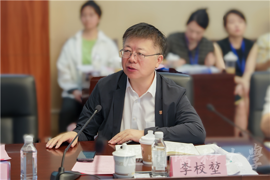 校党委书记吕一军在致辞中向参加本次考核会的各位专家表示欢迎和感谢,并向专家组介绍了我校近年来学科建设的基本情况、优势特色学科群建设的背景和意义以及开展学科群中期考核工作的要求。他强调,学科建设是高等教育对接国家和区域发展战略需求的重要纽带,是学校高质量发展的龙头和内涵,打造优势特色学科群是我校深入推进“双一流”创建和高水平大学建设的重要举措。本次的中期考核工作是对各学科群建设规划实施、建设成效和过程管理的综合考察与全面检验,希望各学科群高度重视,严格按照考核要求和建设维度,认真汇报学科群的建设情况,并以此次考核为契机,在今后的建设中进一步凝练学科方向,突出学科特色和优势,强化体制机制创新,不断提升学科水平。同时,他希望各位专家对学校学科群建设进行全面“把脉问诊”,共同研讨学科群建设战略定位与建设路径,助力我校学科建设高质量内涵式发展。