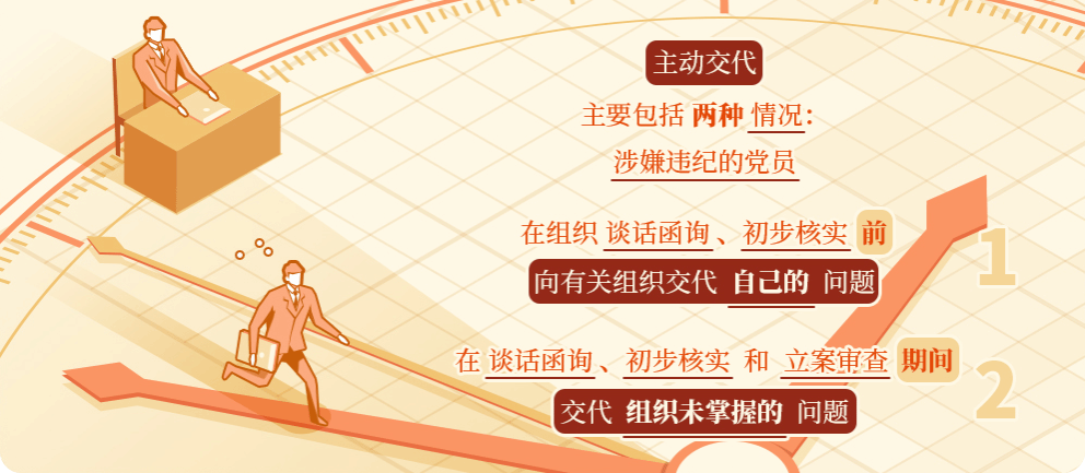 一是涉嫌违纪的党员在组织谈话函询、初步核实前向有关组织交代自己的问题。在组织谈话函询、初步核实前向有关组织交代自己的问题,包括主动交代组织已经掌握的问题,也包括交代组织尚未掌握的问题。