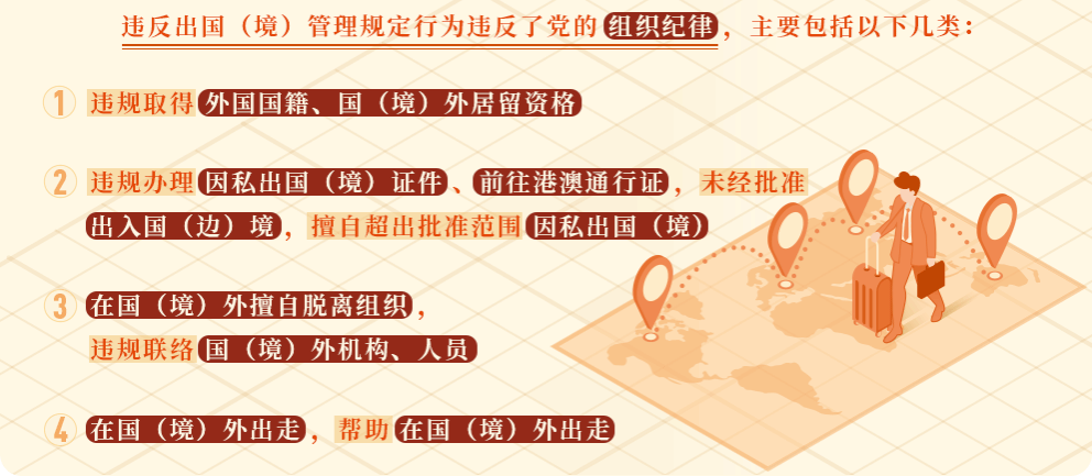 《中国共产党纪律处分条例》对违反出国(境)管理规定行为列出负面清单,作出处分规定。