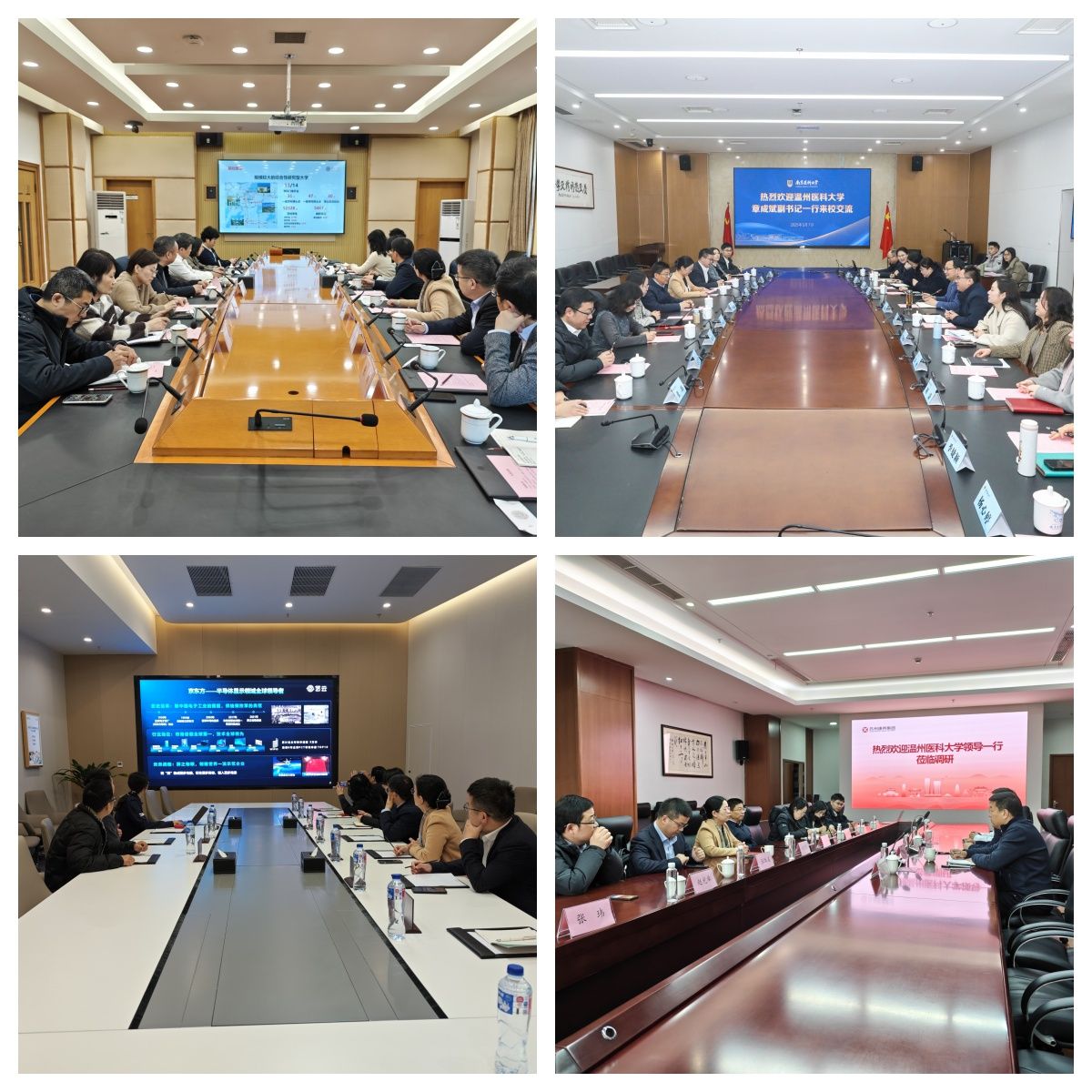 章成斌对4家单位的热情接待表示感谢,也诚挚邀请4家单位能到温医大开展交流合作。并表示江苏是我国教育强省,经济强省,我校积极开展与在苏高校及企业的交流合作。苏州大学在历史底蕴、人才培养、教育国际化、产学研一体化、办学成效、校友工作等方面特色优势明显,对温医大的发展具有重大的借鉴意义。南京医科大学与我校同为独立设置的委部省共建医科院校,具有深厚的渊源和合作基础,未来双方将进一步合作推进医学生育人新模式和新成果。京东方作为国内头部科技企业,在科技创新和文化建设方面有鲜明的特色和优势,苏康养集团是全国首家由地方政府发起设立的市属一级国有康养集团,未来与2家单位在毕业生就业实训、医院管理、技术合作等领域有着光明的合作前景。