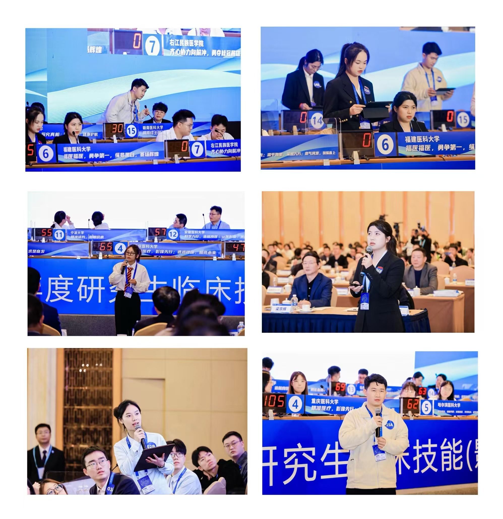 此次竞赛分为预赛、复赛、决赛三个阶段。经过预赛选拔,共有30支队伍入围复赛,最终总分排名前15名进入决赛。复赛由“定时做的多”“按图循征/病”“一眼定乾坤”“十全十美”4个环节组成。决赛由“必答题”“抢答题”“定时做的多”“你描述我诊断”“风险题”5个环节组成,全面考察选手的基础知识储备、临床诊断思维能力及团队协作能力。