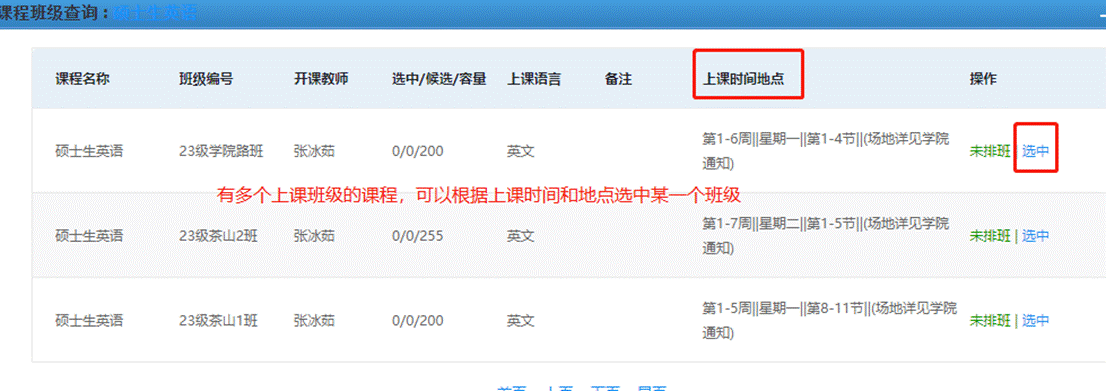 以上课程不需要操作选班功能,由开课学院或研究生院直接加入上课班级。具体上课通知后续详细公布。